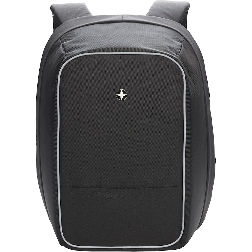 Miljövänlig anti-stöld-ryggsäck från Swiss Peak. Invändigt finns ett vadderat fack för en 15,6 tums laptop. Ryggsäcken har dolda dragkedjor och fack. På ryggsäckens framsida finns ett reflekterande band som ökar synligheten i mörker. Registrerad design®.