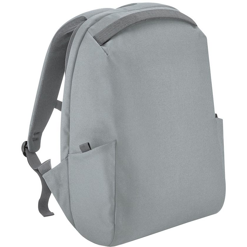 Datorryggsäck av återvunnen polyester. Polyestern är GRS-certifierad av Control Union CU811033. Huvudfacket har dold accesspunkt. Invändigt finns ett vadderat fack för en 15,6 tums laptop. På baksidan finns en dragkedjeförsedd förvaringsficka med RFID-blockerande vaddering. Dragkedjorna är låsbara. Baksidan är ergonomisk och andas. Tyget har en vattenavvisande ytbehandling.