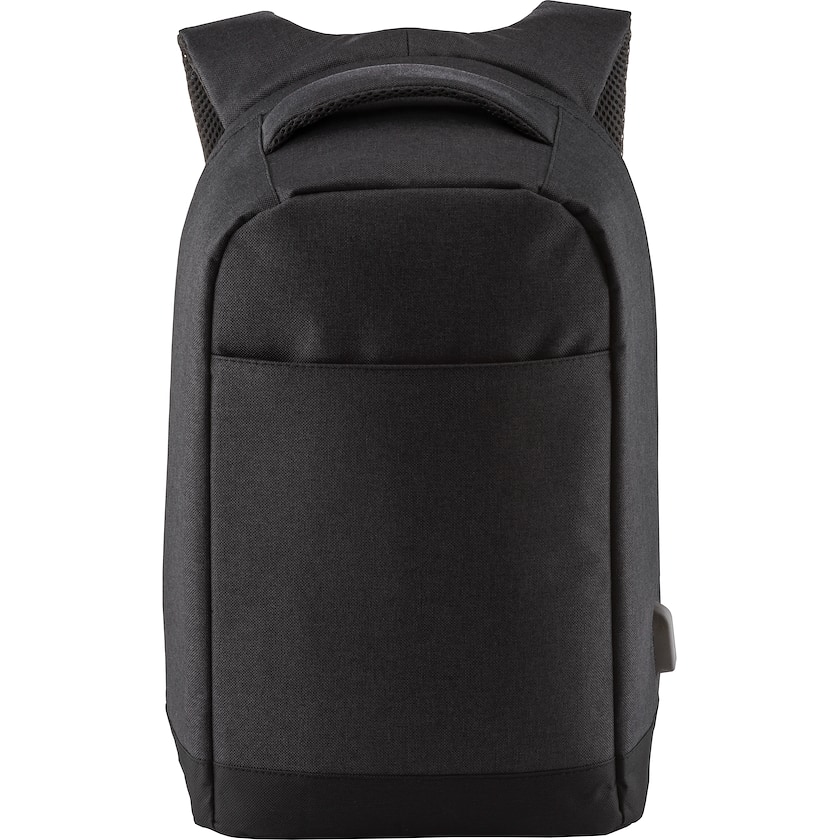 Prisvärd datorryggsäck med ökat stöldskydd. Ryggsäckens baksida och fickan framtill är förstärkt för att förhindra att tjuvar skär upp tyget. Vidare har ryggsäcken dolda dragkedjor. Invändigt finns ett fack som rymmer en 15 tums laptop. Endast 1-färgstryck är möjligt.