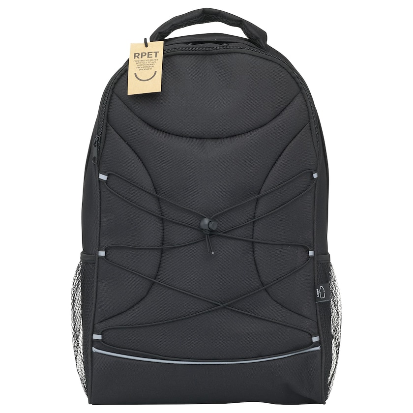 Miljövänlig datorryggsäck. Ryggsäcken är tillverkad av rPET (återvunna PET-flaskor). Invändigt finns ett vadderat fack för en 15,6 tums laptop. Axelremmar och baksida är bekvämt vadderade. Endast 1-färgstryck är möjligt.