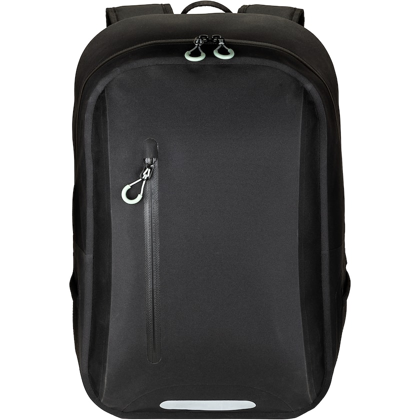 Vattentät datorryggsäck. Invändigt finns ett vadderat fack för en 15 tums laptop som är möjligt att ta loss. Ryggsäcken har sömmar med s.k. heat-seal, vilket gör att väta stås emot effektivt. Framtill och på sidorna finns fickor. Endast 1-färgstryck är möjligt.