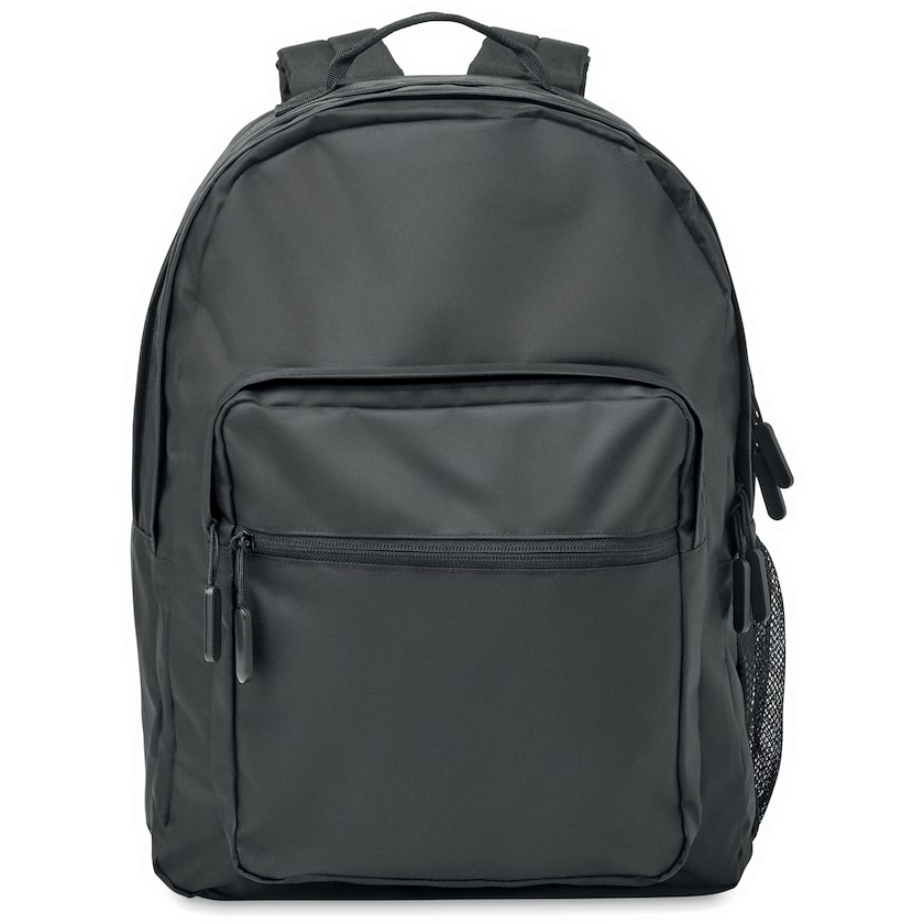 Datorryggsäck med tryck av återvunnet RPET-tyg. Invändigt finns ett vadderat fack för en 15 tums laptop. Ryggsäcken har två stora dragkedjeförsedda fack, dubbla förvaringsfickor framtill samt nätficka på ena sidan. Baksida och axelremmar är vadderade.