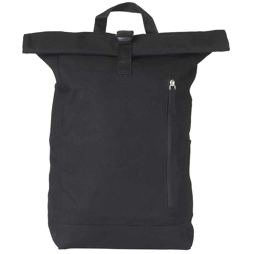 Roll-top-ryggsäck av kraftig canvastyg. På ena sidan finns en mindre ficka och framtill finns en större ficka med dragkedja. Endast 1-färgstryck är möjligt.