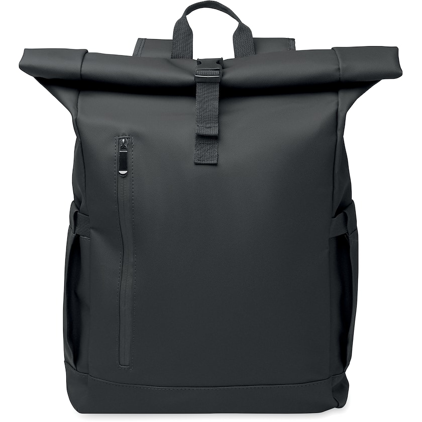 Miljövänlig roll-top-ryggsäck med vattentålig yta. Invändigt finns ett fack för en 15 tums laptop. Baksida samt axelremmar är vadderade och försedda med meshtyg.