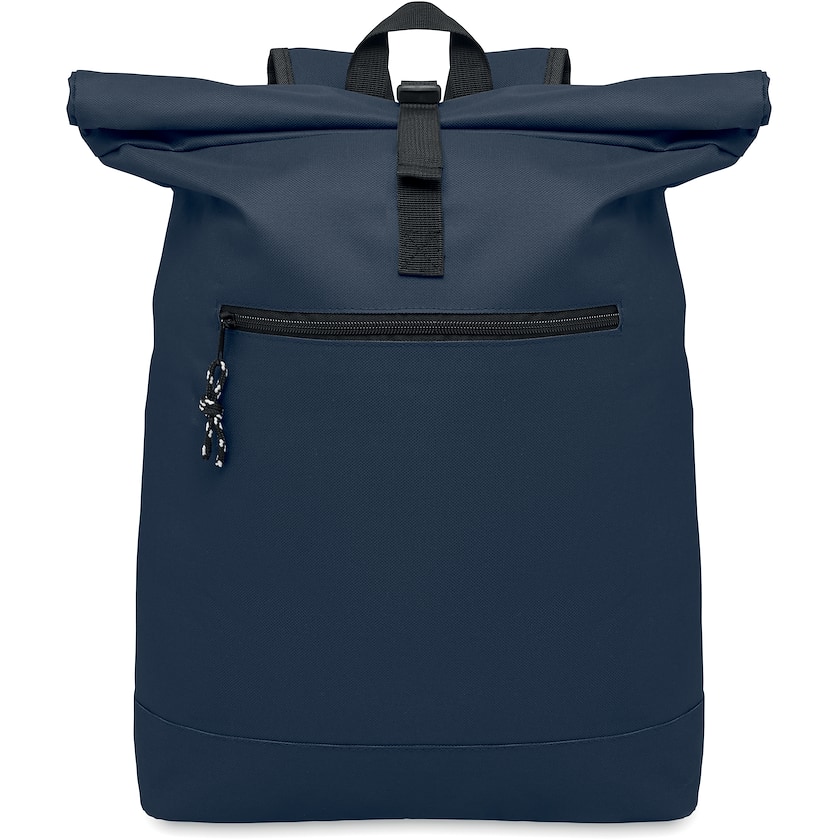 Prisvärd roll-top-ryggsäck med tryck. Invändigt finns en vadderad ficka för en 15 tums laptop. Rygg och axelremmar är vadderade. Framtill finns en dragkedjeförsedd ficka.