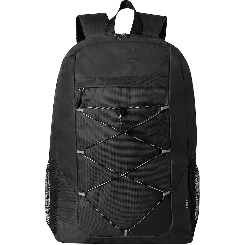 Miljövänlig ryggsäck till lågt pris. Hull är tillverkad av rPET, dvs återvunna PET-flaskor. Framtill finns en dragkedjeförsedd ficka. Baksidan och axelremmarna är vadderade. På sidorna finns nätfickor.