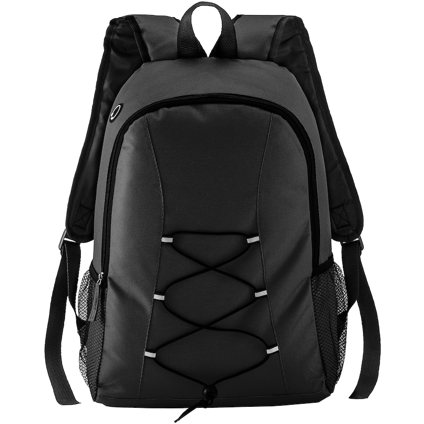 Prisvärd ryggsäck med eget tryck. Ryggsäcken har två nätfickor på sidorna. Baksida och axelremmar är vadderade. Endast 1-färgstryck är möjligt.