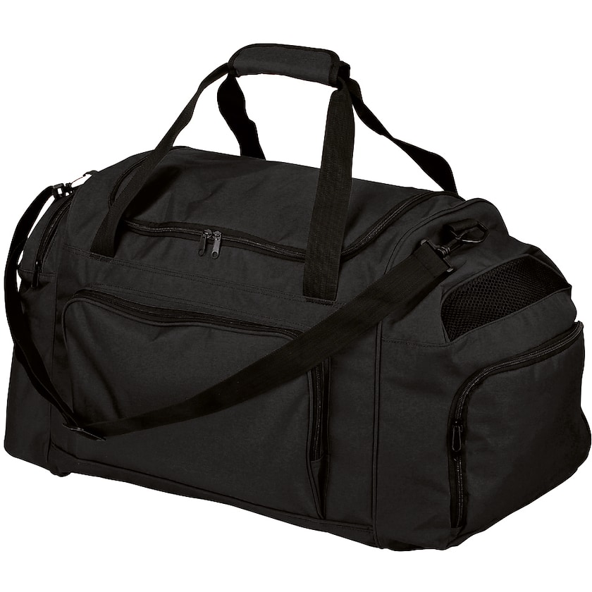 Rymlig och robust träningsväska med stora utanpåliggande fickor med blixtlås.