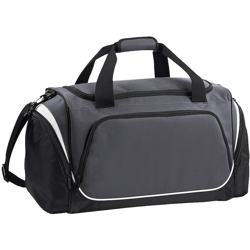Sportväska av hög kvalitet med smarta detaljer. Väskan har ett separat fack för t ex skor eller blöta kläder. Inuti väskan finns en ficka för värdesaker och en smart nätficka för mindre saker. På framsidan och på de båda kortsidorna finns dragkedjeförsedda förvaringsfickor. Axelremmen är reglerbar och avtagbar. På undersidan finns fötter för minskad slitage.