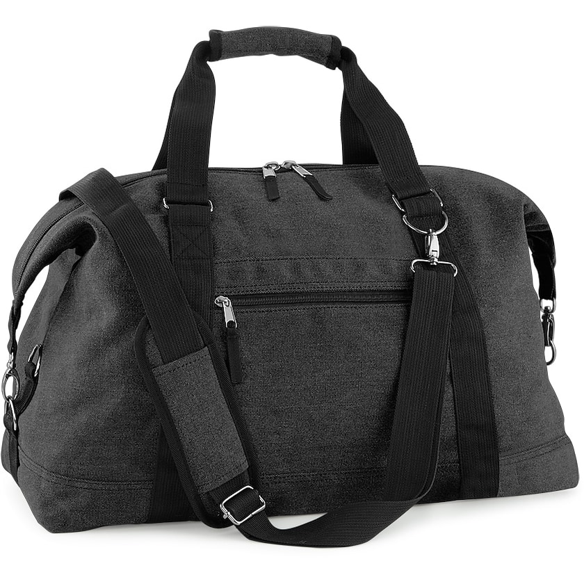 Vintageinspirerad väska av bomullscanvas. Väskan har vadderat handtag, en avtagbar justerbar axelrem och en blixtlåsförsedd extern ficka.