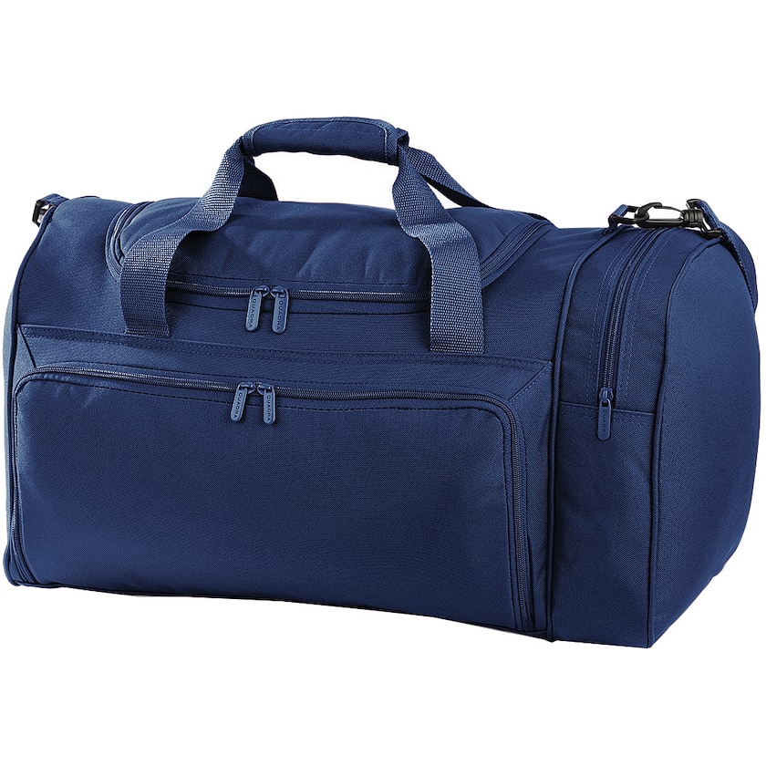 Högkvalitativ träningsväska med snygga detaljer. På väskans ena kortsida finns en stor, dragkedjeförsedd förvaringsficka. Även på väskans framsida finns en stor förvaringsficka. Axelremmen är vadderad och avtagbar. Väskan har förstärkt botten för ökad hållfasthet. På undersidan finns fötter som förhindrar slitage.