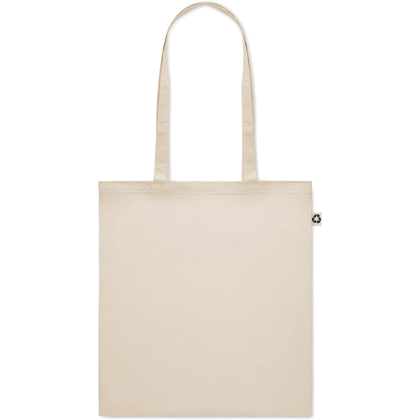 Miljövänlig tygkasse som kan köpas från 50 st. Belton Natural är tillverkad av 65% återvunnen bomull och 35% bomull. De långa handtagen gör den bekväm att bära över axeln.