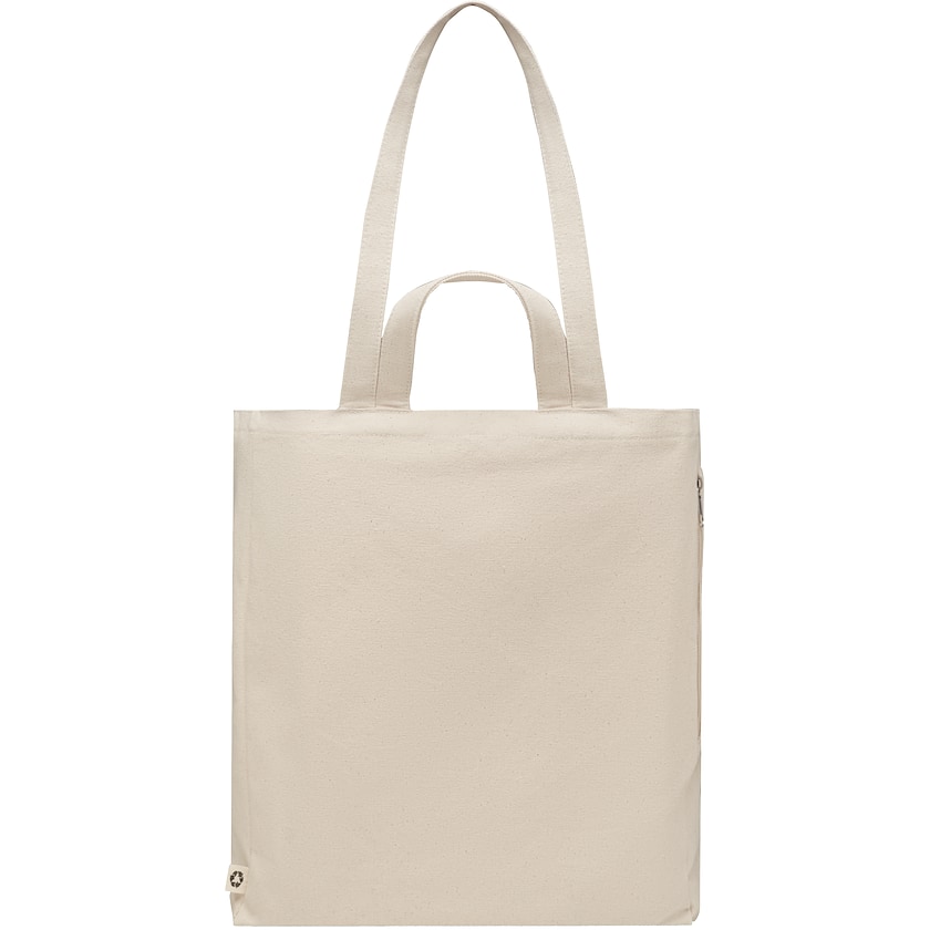 Tygkasse av tålig bomullsblandning. Brienz är tillverkad av 70% återvunnen bomull och 30% återvunnen polyester. Kassen har både långa och korta handtag. På insidan finns en dragkedjeförsedd förvaringsficka.