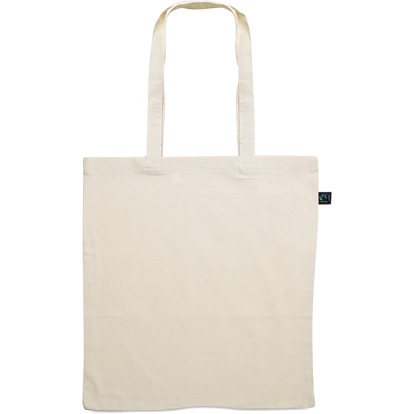 180 grams bomullskasse av Fairtrade-certifierad bomull. Kassen har långa handtag. Kan köpas från endast 50 st. På bomullskassens ena sida finns en etikett som visar att den är gjord av Fairtrade-certifierad bomull.