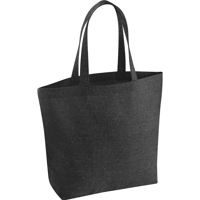 Tygkasse av en mix av återvunnen bomull och återvunnen polyester. Tygkassen är rymlig och rymmer hela 18 liter. Handtagen har en längd på 58 cm. En bra tygkasse som dessutom är bra för miljön!