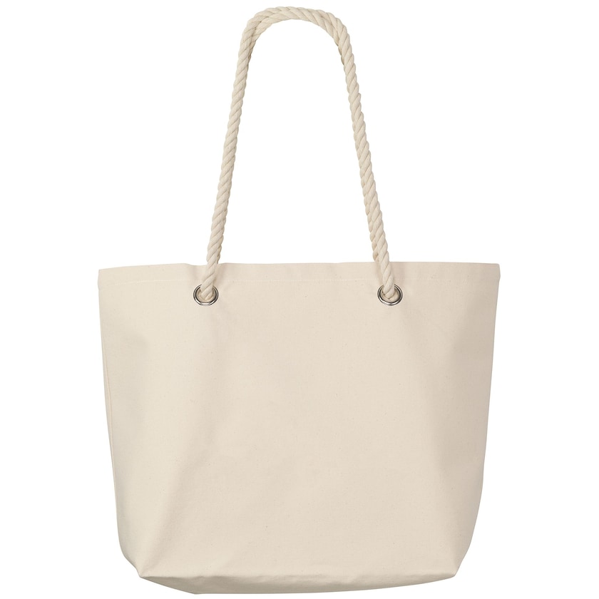 Påkostad bomullskasse med rephandtag. Invändigt finns en ficka med blixtlås. Perfekt för shoppingturen eller stranden. Endast 1-färgstryck är möjligt.