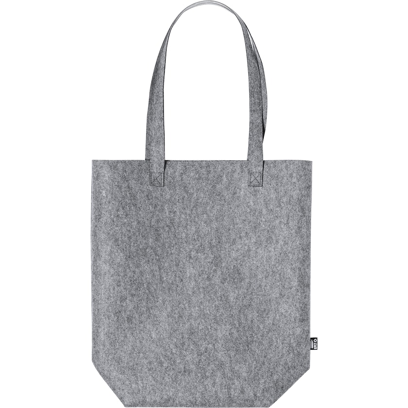 Smart filtkasse av miljövänligt material. Filtmaterialet är tillverkat av rPET (återvunna PET-flaskor). På kassens sida finns en etikett som visar att den är tillverkad av rPET.