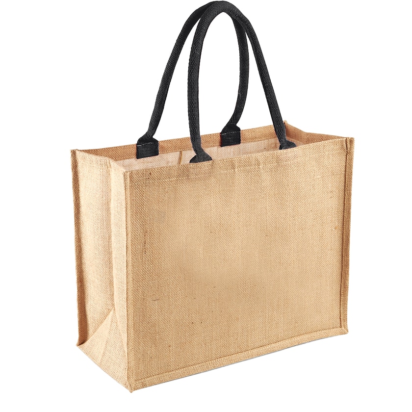 Stor tygkasse i tålig jute och handtag av bomull. Ifall flera färger ska tryckas så får inte färgerna sitta ihop.