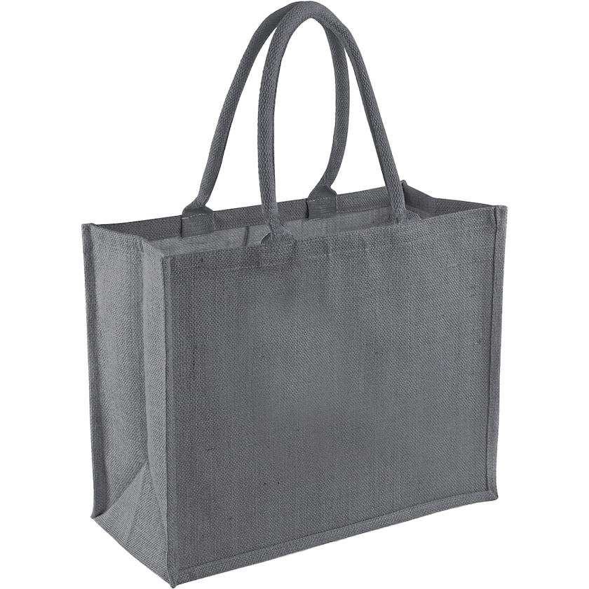 Stor tygkasse av färgat jutetyg. Handtagen är tillverkade av bomull. Ifall flera färger ska tryckas så får färgerna inte sitta ihop.