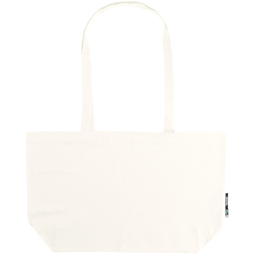 Bomullskasse tillverkad av ekologisk och Fairtrade-certifierad bomull. Handtagen är 80 cm långa. Certifierad i enlighet med Fairtrade, EU Ecolabel, SA8000 och Oeko-tex. Beställ miljövänliga bomullskassar med tryck hos Axon Profil!