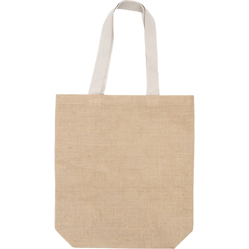 Jutekasse med bomullshandtag. Insidan är laminerad för ökad hållfasthet. En perfekt shoppingkasse! Endast 1-färgstryck är möjligt.