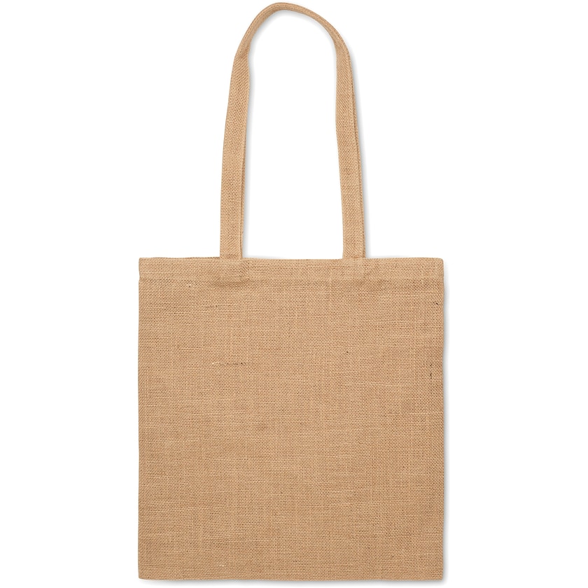 Vacker jutekasse med långa handtag. Även handtagen är av jute vilket ger kassen en unik design.