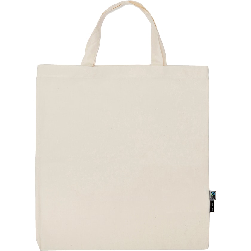 Naturfärgad bomullskasse av ekologisk och Fairtrade-certifierad bomull. Handtagen är 33 cm långa. Modellen finns också med långa handtag. Certifierad i enlighet med Fairtrade, EU Ecolabel, SA8000 och Oeko-tex. Beställ ekologiska bomullskassar med tryck hos Axon Profil!