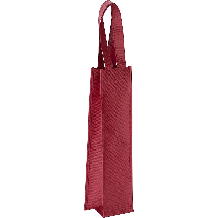 Vinpåse för en vinflaska. Sanoma är tillverkad av non-woven-tyg, vilket är ett lätt och tåligt material. Tack vare breda handtag transporteras vinflaskan säkert och bekvämt. Handtagen är 165 mm långa.