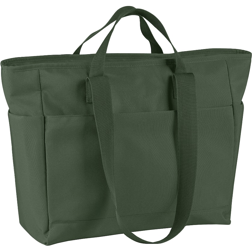 Exklusiv shoppingkasse med vattenavvisande tyg. Huvudfacket är dragkedjeförsett och invändigt finns en dragkedjeförsedd mindre ficka. På kassens utsida finns fickor. Tyget är tillverkat av GRS-certifierad återvunnen polyester som är certifierad enligt Control Union CU811033.