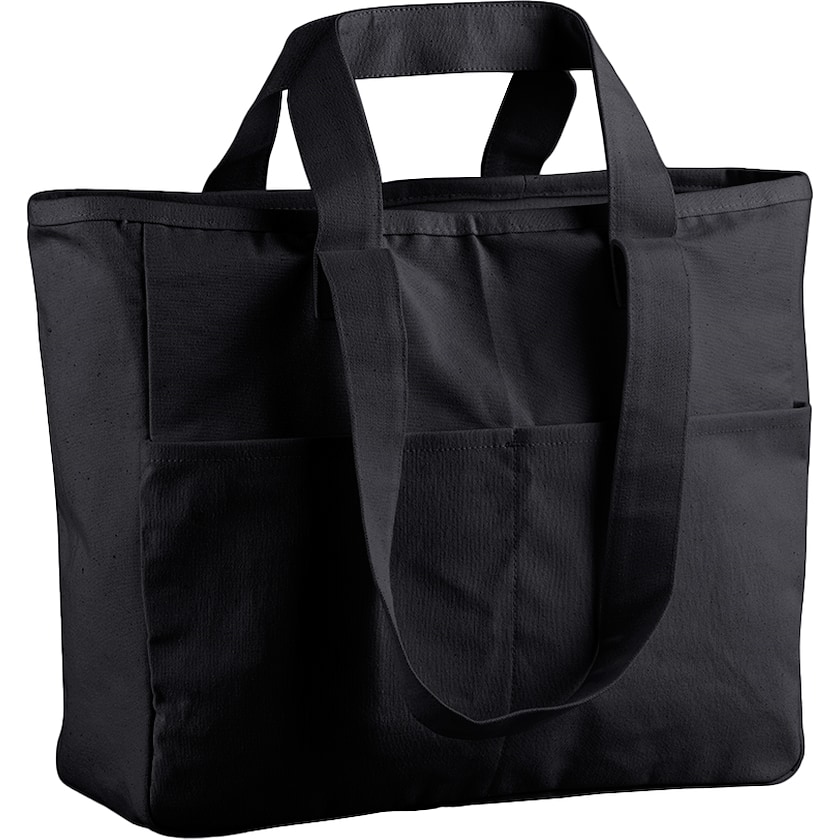 Strandväska av kraftig bomullscanvas. Huvudfacket är försett med dragkedja. Framtill finns två mindre fickor. Tyget väger hela 475 gram och håller hög kvalitet.